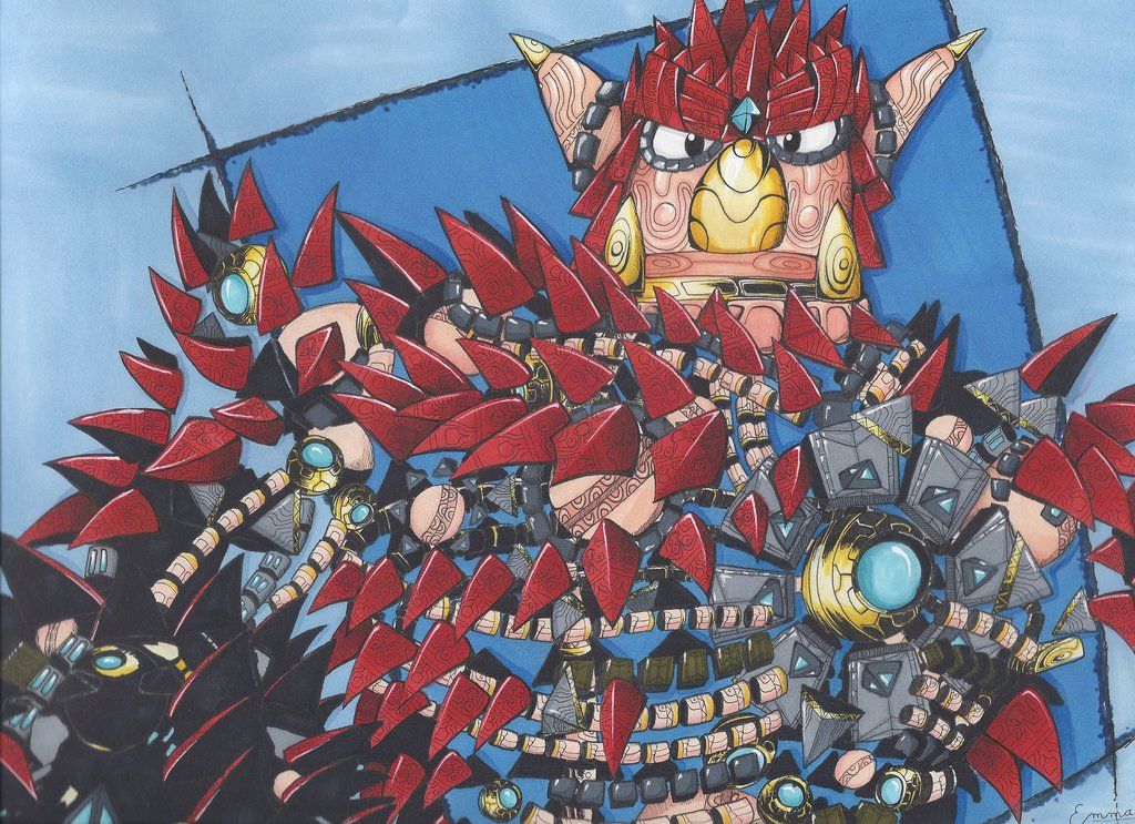 This next piece of fan art depicts a fan favorite game, Knack. The game was a unique one, putting players into the shoes of a humanoid being named Knack. Along with his creator and a band of heroes, the creature made of ancient artifacts known as relics begins to help humanity stop the threat of invading goblins, who seek humanity's destruction. This fan art depicts Knack and his raw power, who is able to grow to the size of a skyscraper when he absorbs several relics.